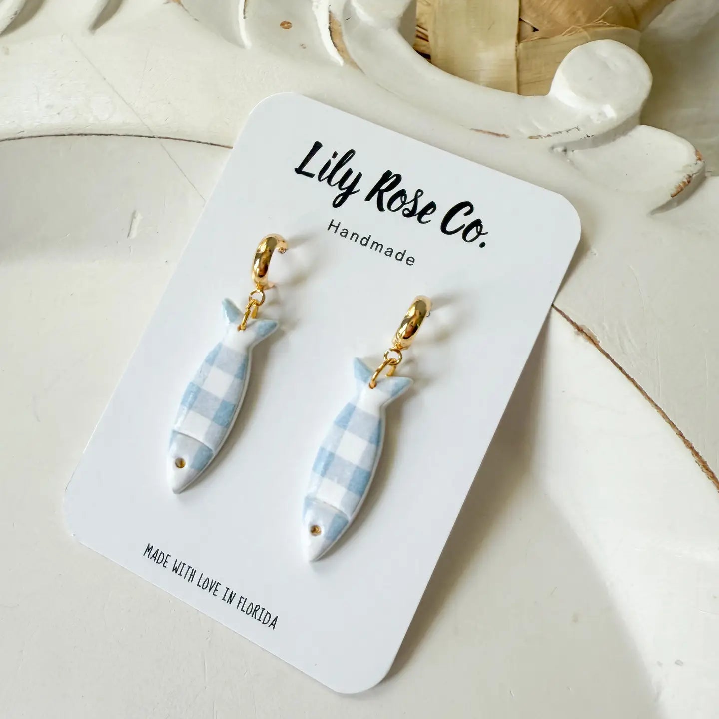 Lily Rose Co. - Blue Gingham Fish Earrings